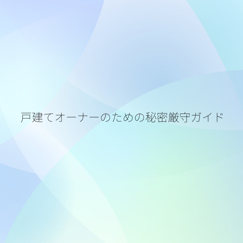 戸建てオーナーのための秘密厳守ガイド