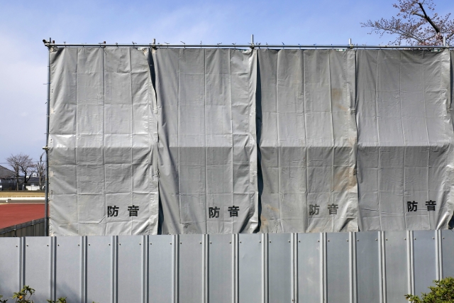 足場・防音シートの設置してホコリが舞ったり、ものが飛んだりしないように囲いをつくる。